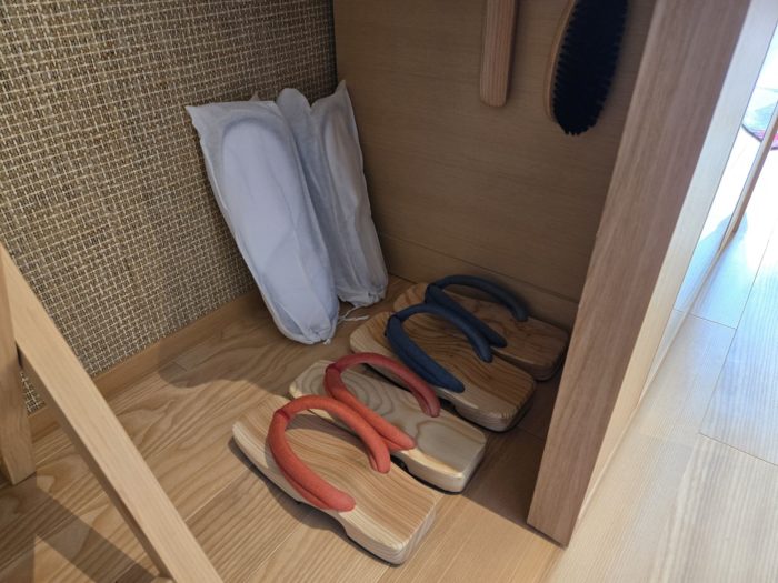 バスローブに加えて羽織と下駄。