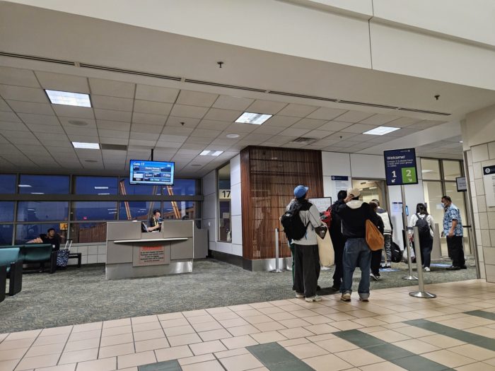 グアムのゲート、顔認証でパスポートも搭乗券もかざさずに搭乗できます。
