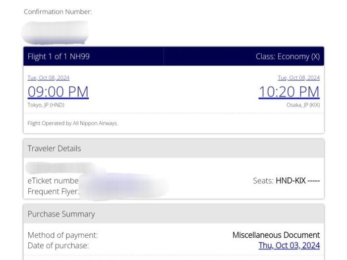 ユナイテッド航空のマイルを使って発券した場合はそれが国内区間だけでも国際線特典航空券と見なされます。(今回の場合は国際線区間も混じってるけど)