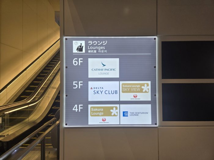 4階に上がるとまずサクララウンジがあり、その先に進むとAMEXのロゴが付いたポールみたいな看板が出ていて、あ、ここか、とわかります。