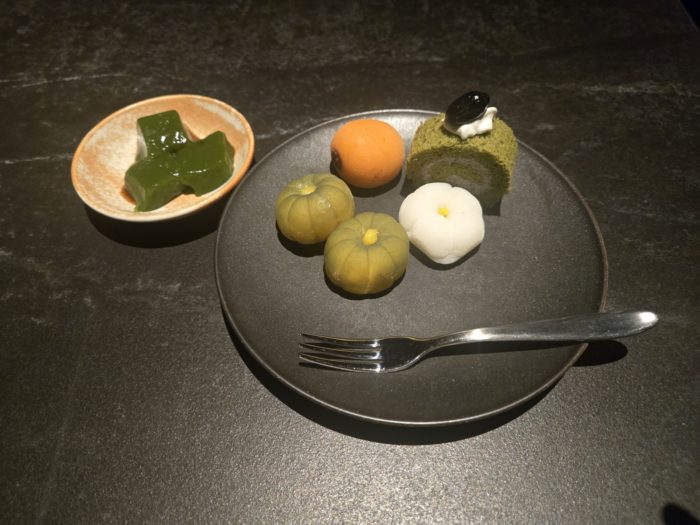 抹茶のロールケーキ、わらび餅、練切がありましたが、わらび餅とロールケーキは俺が最後の1個でした。