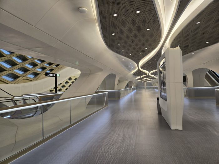 流線を多用したこの駅はザハ・ハディド・アーキテクツのデザインだそうです。なるほどね。