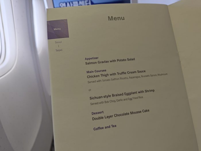 このフライトはソウルから台北までたった2時間半のフライトだから寝る時間なんてないですけどね。