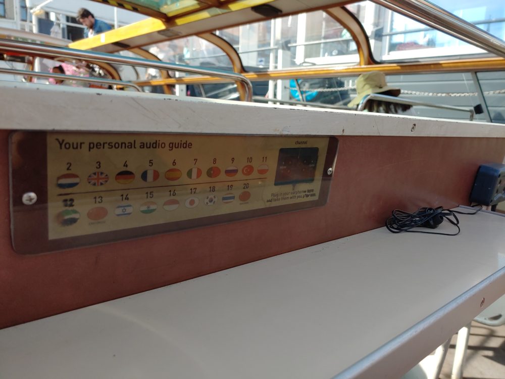要所要所でイヤホンで観光案内が流れるんですが、好きな言語を設定できます。