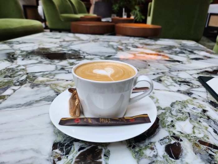 せっかくなのでドリンクにし、ロビーラウンジでフラットホワイトをオーダーしました。