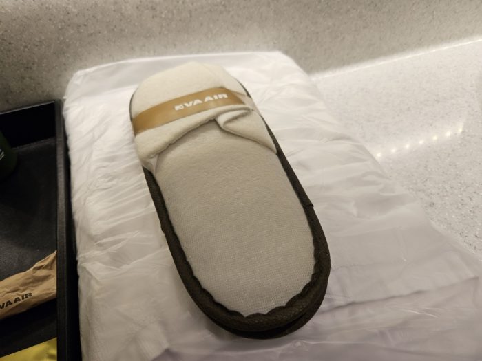 成田のANAラウンジもシャワールームには機内とは違うシンプルなスリッパが用意されているけど、エバー航空のシャワールームスリッパのほうが質感がいい!