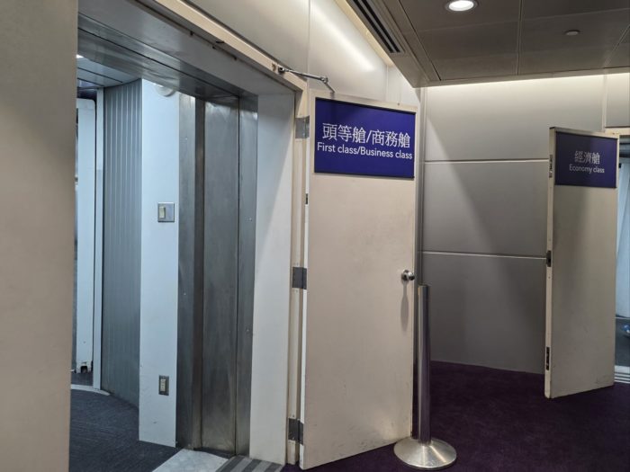 大型機なので搭乗のためのドアがL1とL2の2つ搭乗橋に接続しており、俺はありがたいことにマイルを使ってビジネスクラスをとっているので左へ進みます。