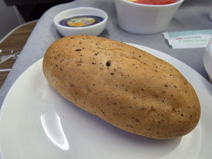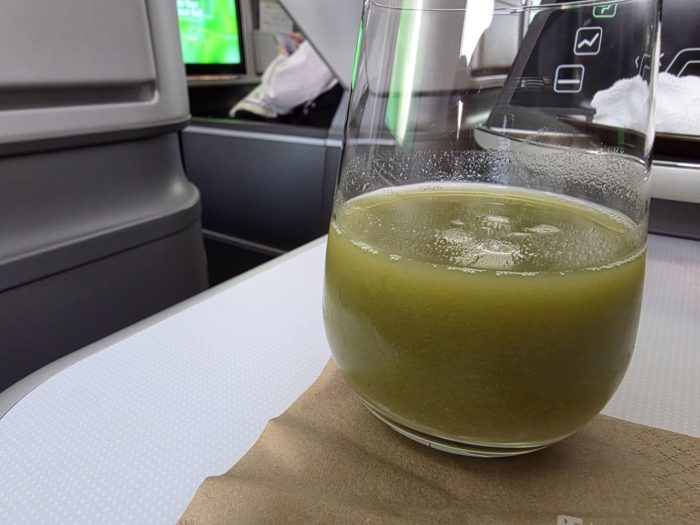 いつものようにクルーが挨拶とウエルカムドリンクのオファーに来てくれたので、ミックスジュースをお願いしました。