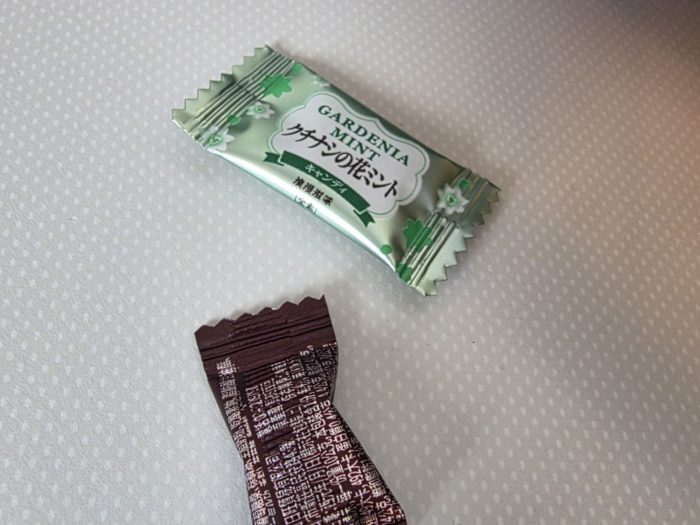 食後はウトウトしてしまっていましたが、着陸体制に入るとのアナウンスで目を覚ますと手もとにミントを置いてくれていました。