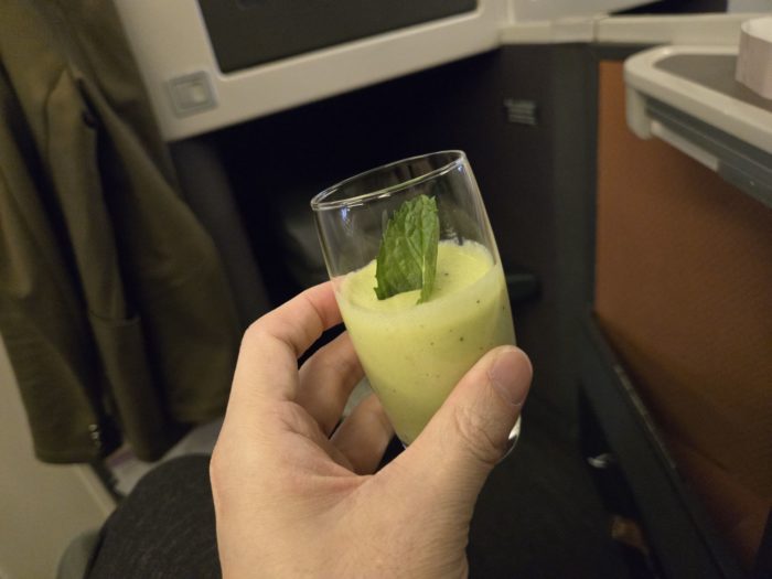 着席するとクルーがウエルカムドリンクを持ってきてくれました。
