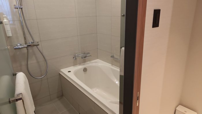 バスルームはちょっと家庭のお風呂みたいな感じ。トイレとはセパレートです。