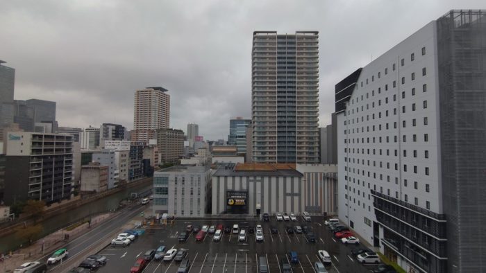 窓からのビューはドンキの駐車場と隣のホテル。