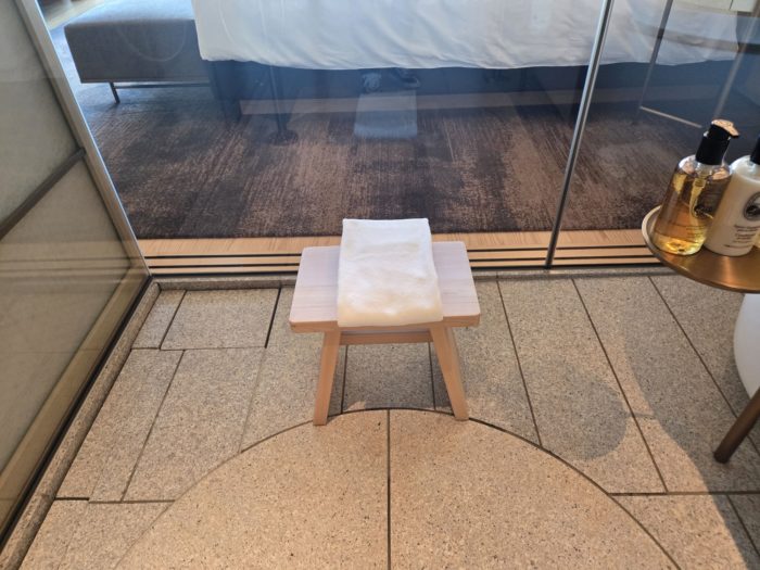 バスルームにある日本的な風呂椅子。