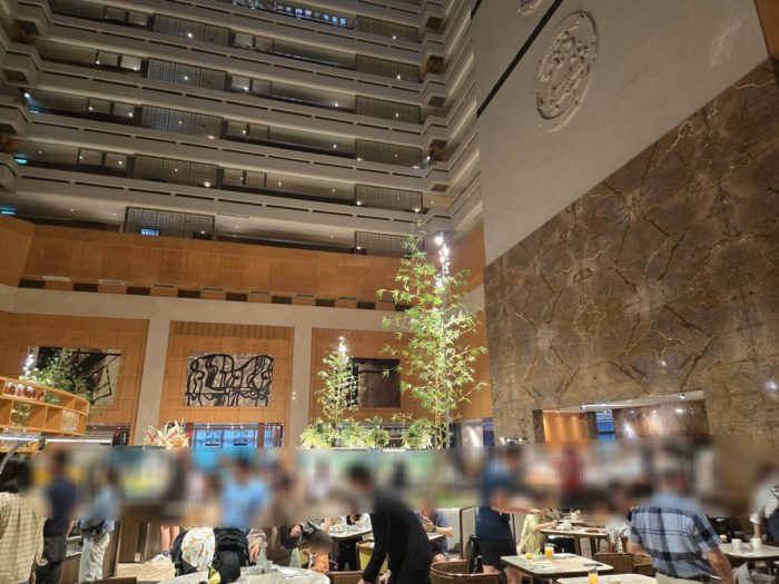 朝食は、チェックイン時に「プラチナ会員の特典で追加ポイントか、レストランでの朝食か、どちらか選べます」と言われてレストラン朝食を選んだので、ラウンジではなくメイン会場に向かいます。