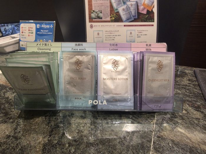 チェックインカウンターでアメニティーを持っていくスタイル。