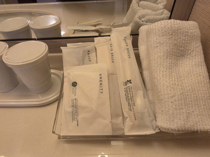 スキンケア以外、歯ブラシなどは部屋にあらかじめあります。
