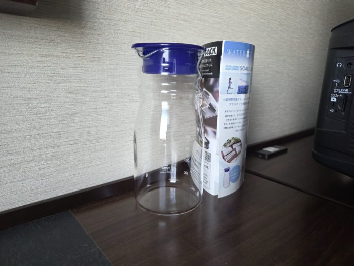 コンプの水はなく、部屋にピッチャーが用意されており、フロアのウォーターサーバーから水を汲んでくるスタイルです。