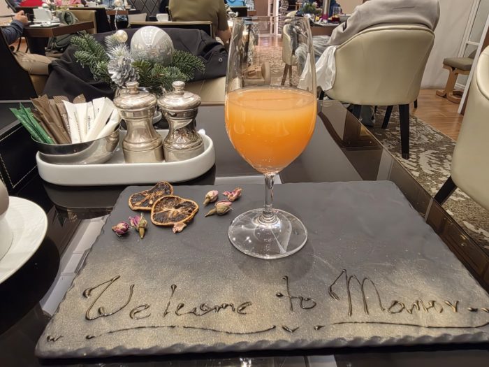 食事を楽しんでいるとウェイターが「ホテルのバーテンダーが特別につくったドリンクです。アルコールは入っていませんので、ご安心してどうぞ」と特別ドリンクを持ってきてくれました。