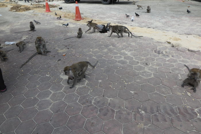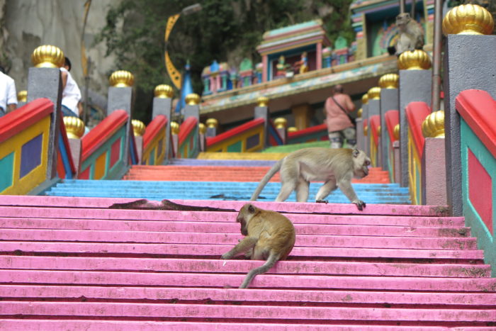 このカラフルな階段が意外と急角度な上に272段もあるので、途中猿に襲われたら転がり落ちそうで少し怖くなります。