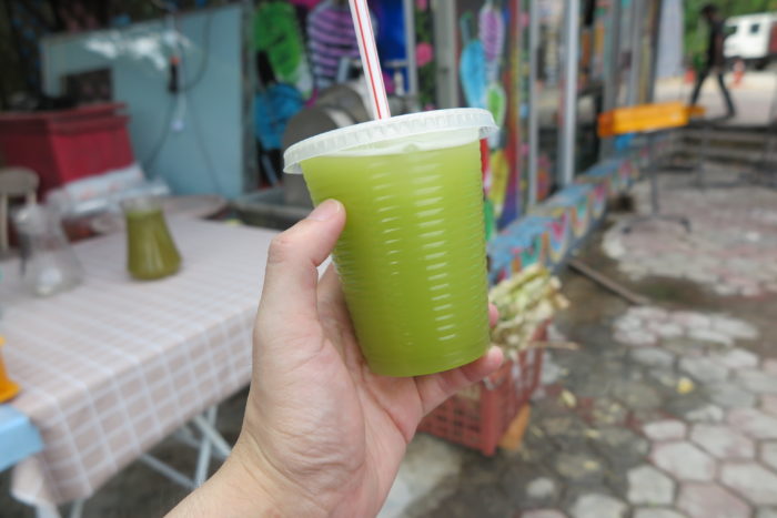 喉が渇いたので、その場でサトウキビをつぶして作ってくれるジュースをオーダー。