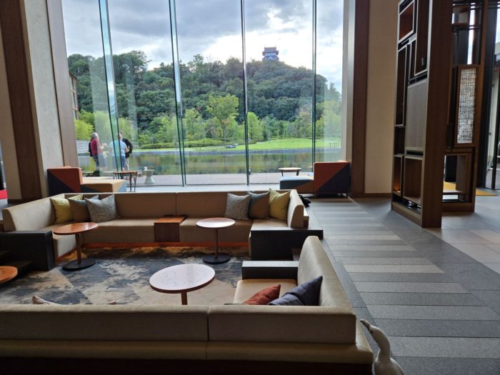 エントランスを進むと、確かに犬山城のお膝元に鎮座するのにふさわしい、和と自然の調和を感じさせるデザインの空間が待ち構えています。