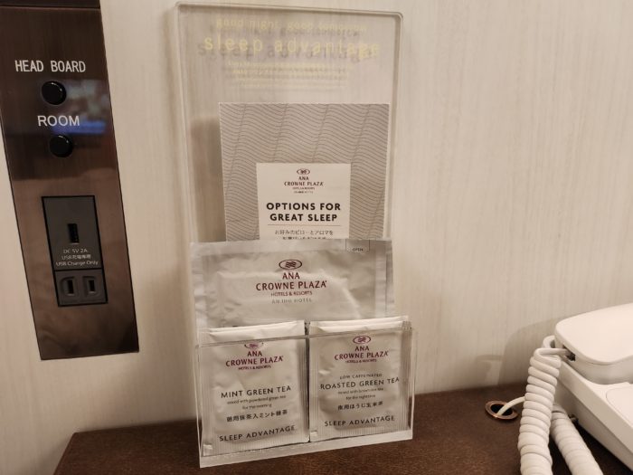 アメニティーつながりですが、ベッドのサイドボードには、こんな少し変わったものが置かれていました。