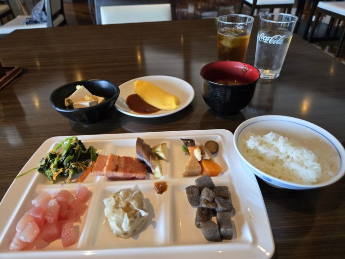 でもテンションが上がるほどのホテル朝食ではない。汗