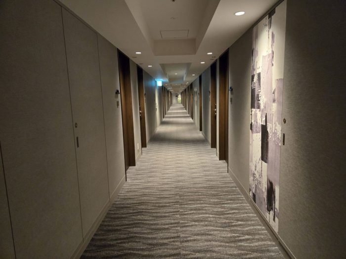 廊下も長くて長くて、なかなか部屋にたどり着きません。(この写真の何倍も廊下続いています)