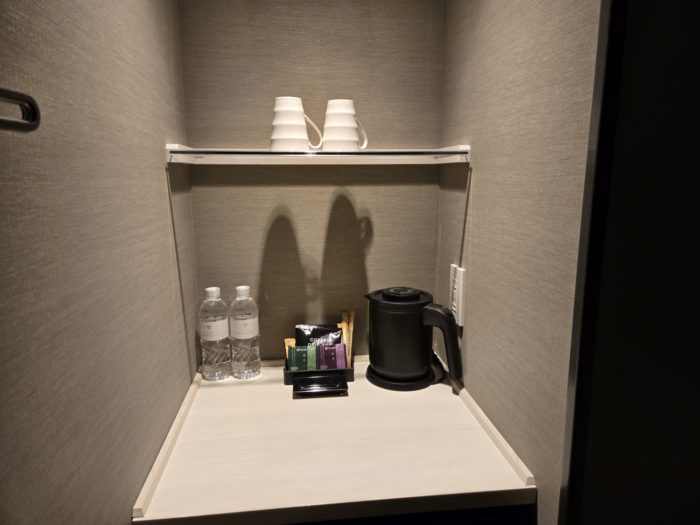 スペース確保のためにミニバーやティーセットはドアのすぐ横にありました。