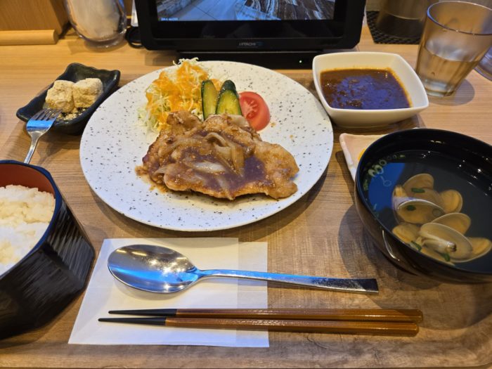 朝ももちろん入浴。ついでに併設の食事処で朝ごはんをしました。