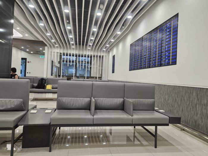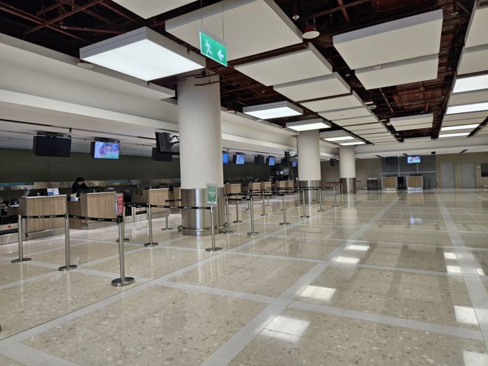 胸に印のためのステッカーを貼られてその先のひろーーい出国審査へ。
