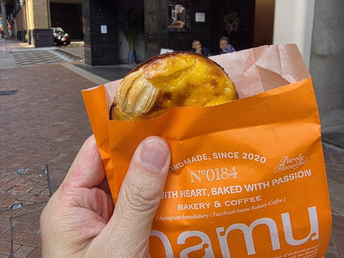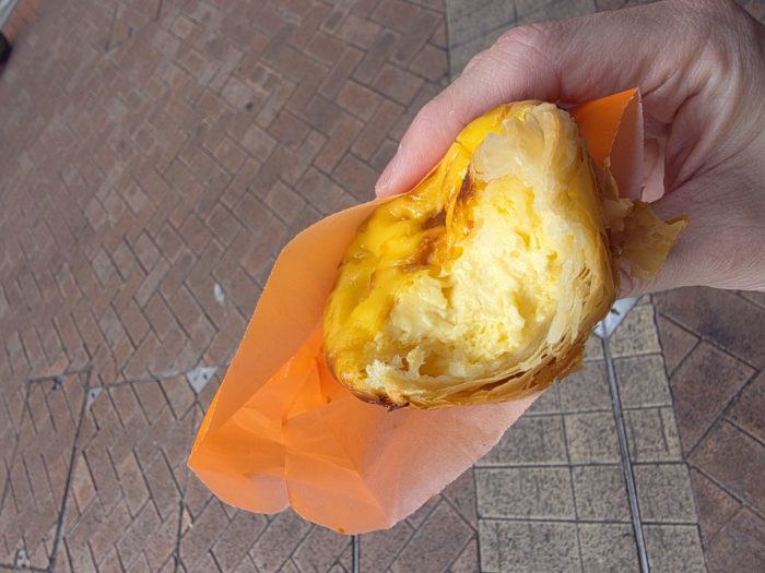 ホテルのウエルカムスイーツや朝食会場にも置いてありましが、せっかくなので街なかにエッグタルト食べ歩きにいってきました。
