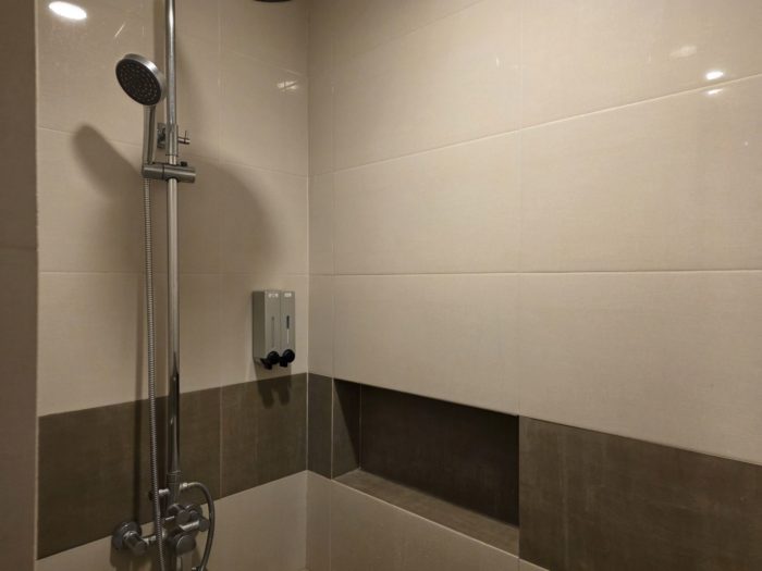 とりたてて素晴らしいわけではないけれど、ちゃんとドライヤーもあるし、タオルはビニール袋に入れられているから恐らく清潔だし安心して使えるシャワールーム。