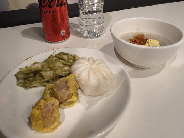 深夜フライトになるので頭を洗ってスッキリしたら、ラウンジ内で軽くフードをつまみながら搭乗を待ちます。