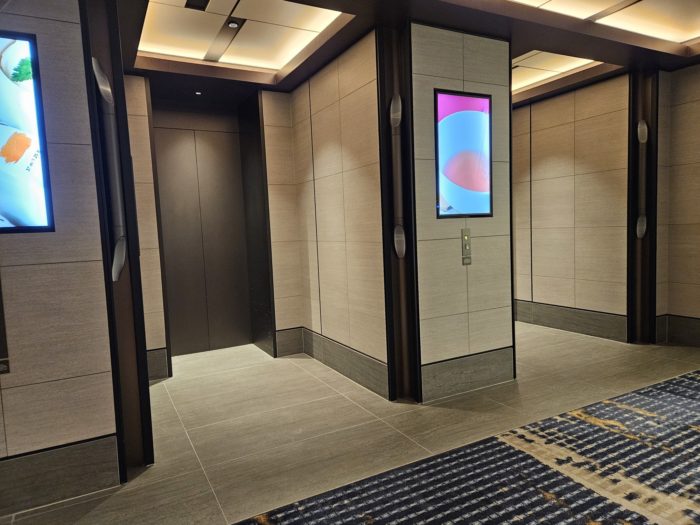 エントランスを入るとすぐにスタッフが荷物を預かってフロントへのエレベーターに案内してくれました。