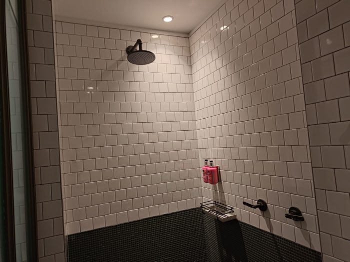 その先にあるバスルームはシャワーのみでバスタブはなし。