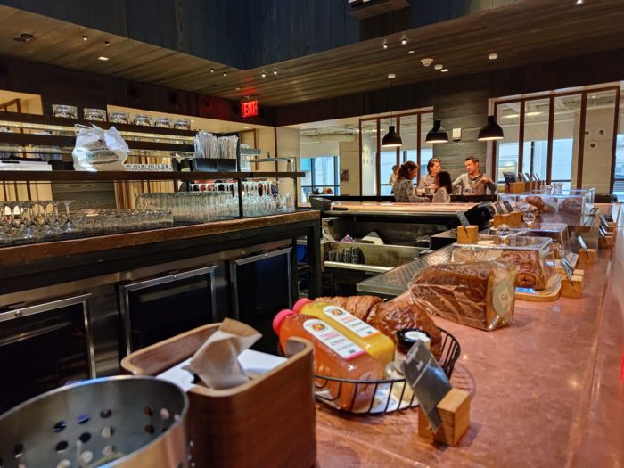 カウンターと冷蔵庫に置かれたパンから欲しいものを選んでキャッシャーへ。