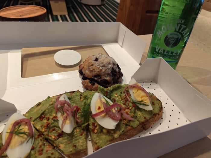 支払った分と同額の30ドル分の飲食クレジットがもらえたので、それで朝食をとることにしました。