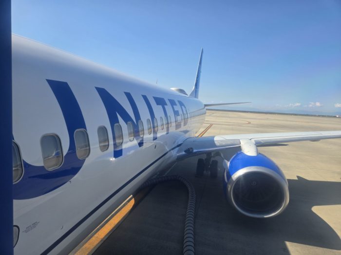 ユナイテッド航空のチェックインカウンターは意外と混雑していました。