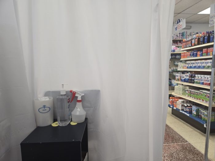 問診票を記入したら、店内に設置された小さなテントの中へ。