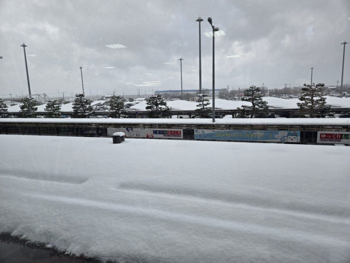 窓の外を見ると真っ白。