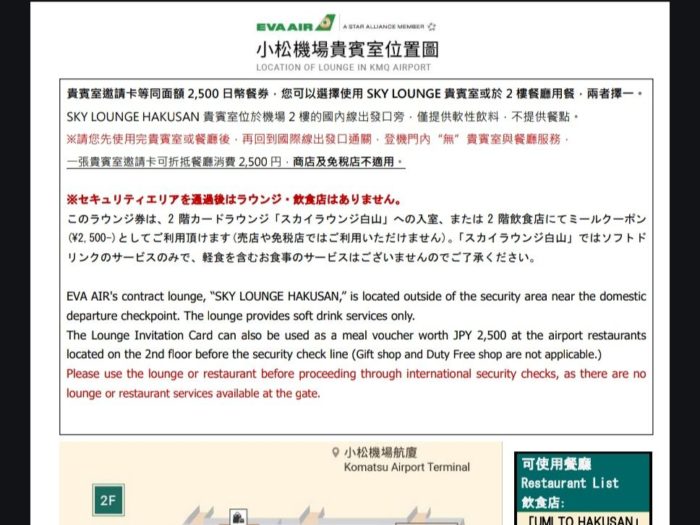 ちなみに小松には国際線のラウンジがないということで、代わりに2,500円分のミールクーポンをもらいました。