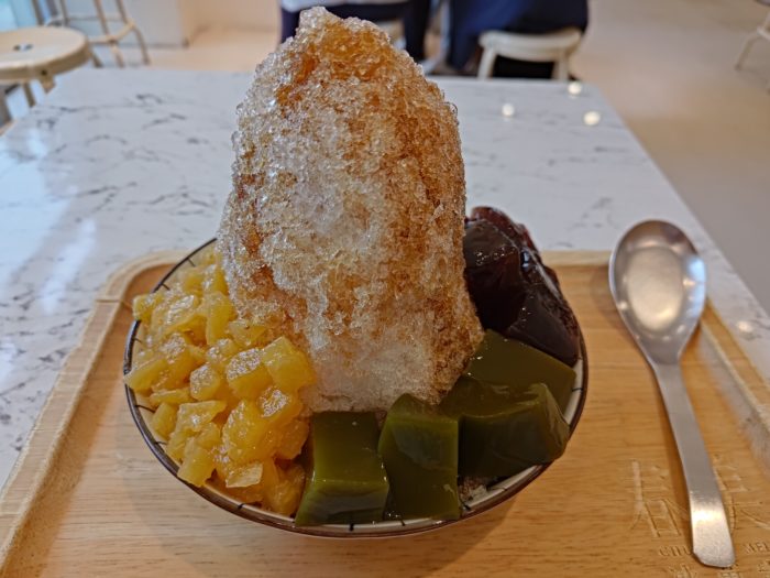 徒歩圏内にあるおしゃれなカフェで台湾らしいかき氷を食べて時間を潰します。