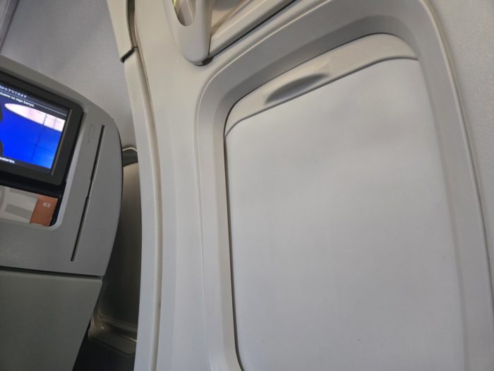 ちなみにこの非常口の窓のシェードって普通の席とは逆に付いてるのだね。今まで気づかなかった。