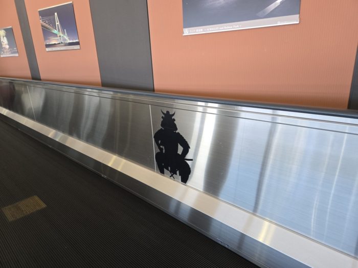 入国審査に向かう動く歩道に武将のシルエットが飾られていました。