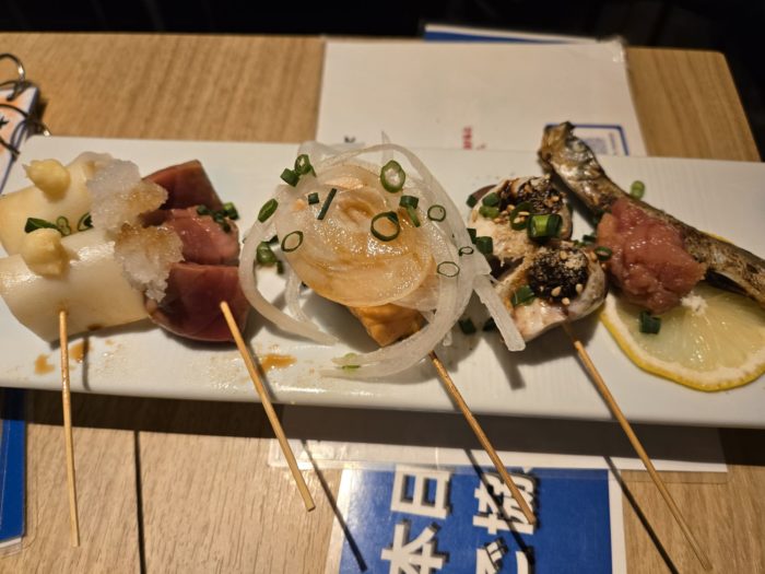 どちらもご飯の量はさほど多くないので、魚串のおまかせ5種も追加。
