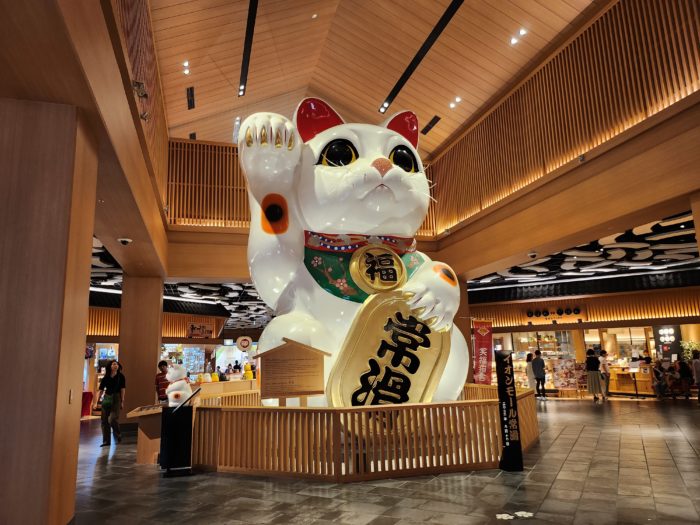 出迎えてくれたのは、どでかい招き猫。常滑焼が有名なんですよね。