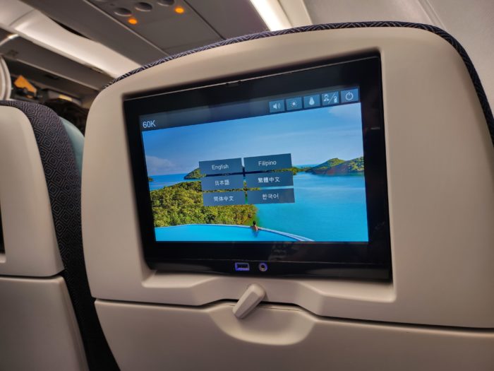 フィリピン航空、かつてはビジネスクラスでも個人モニターがなく代わりにiPadを配布したりしていましたがこの機材はエコノミーでもきれいなモニターが付いていました。