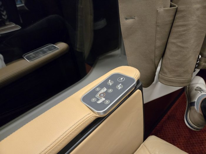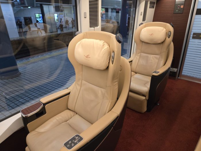 プレミアムシートをとったので、シートはいくら倒しても後ろの人に迷惑をかけないバックシェル型。