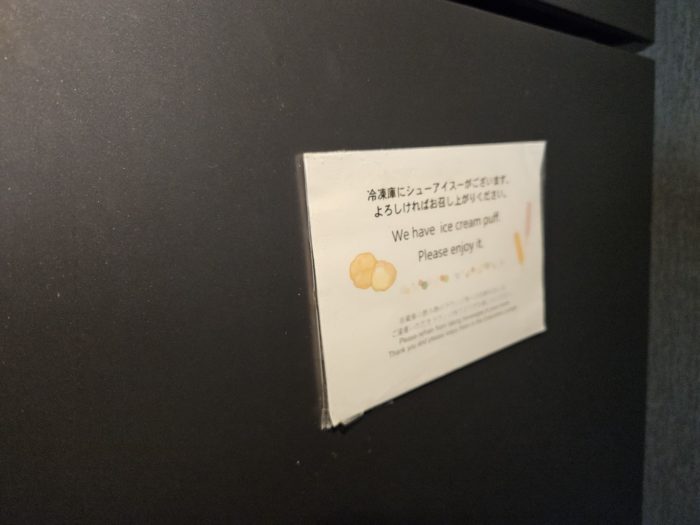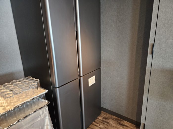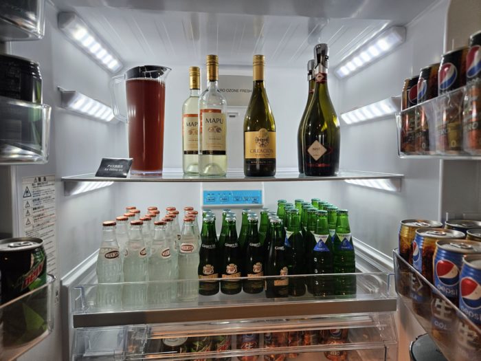 冷蔵庫にドリンクが入っていますが、ガラス扉じゃない家庭っぽい冷蔵庫。珍しいですね。